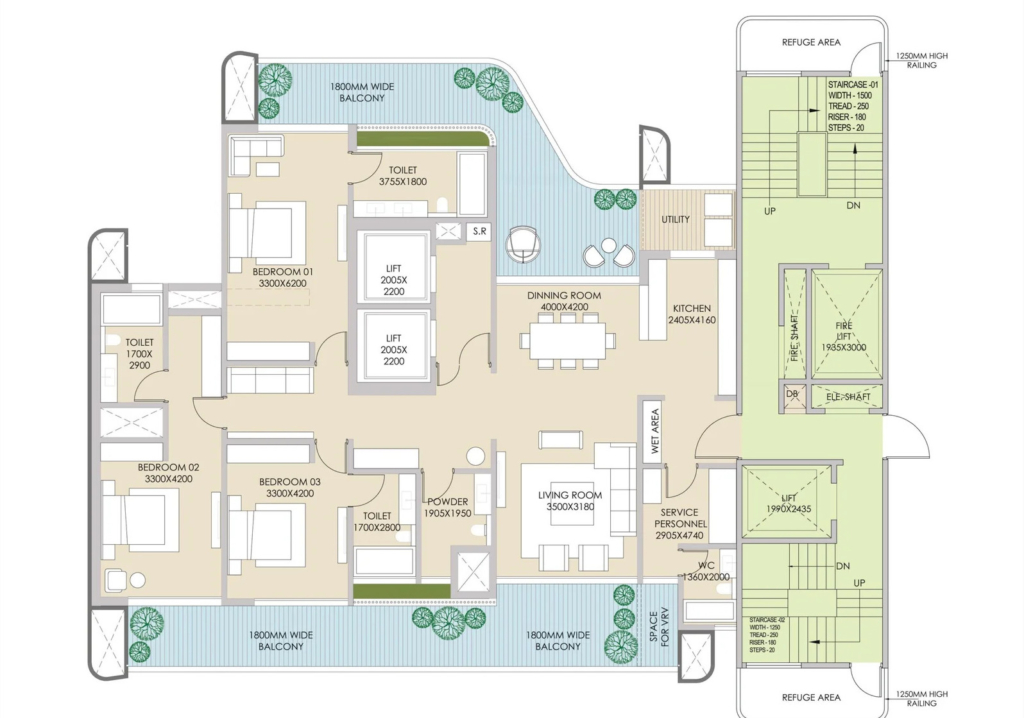 The project offers 4 BHK and 6 BHK penthouse-style plotted configurations for customizable living.