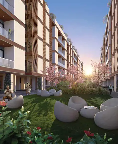 Explore Samsara Ivana photos capturing the verdant landscape, modern elevations, and thoughtfully planned amenity spaces in the gallery section.
