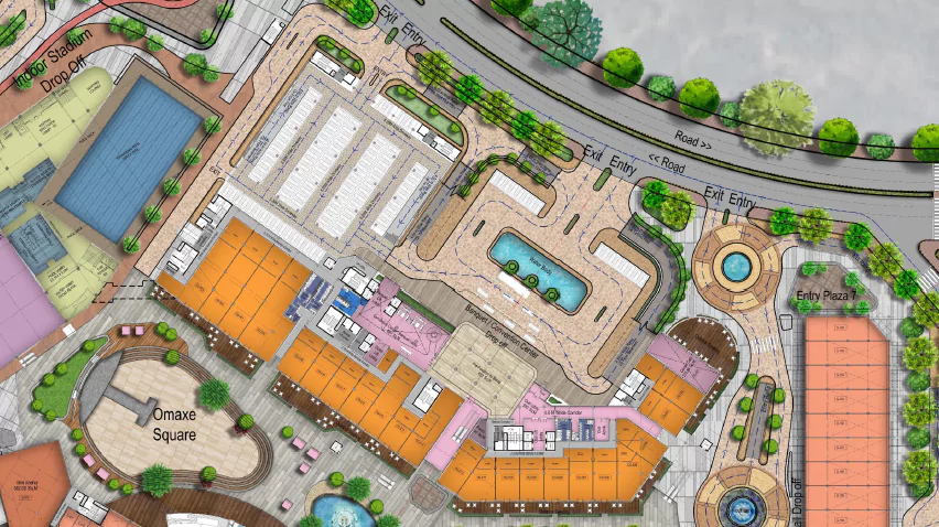 Omaxe Dwarka floor plan for hybrid retail units Customizable anchor stores with road-facing entries Flexible office and co-working floor plans