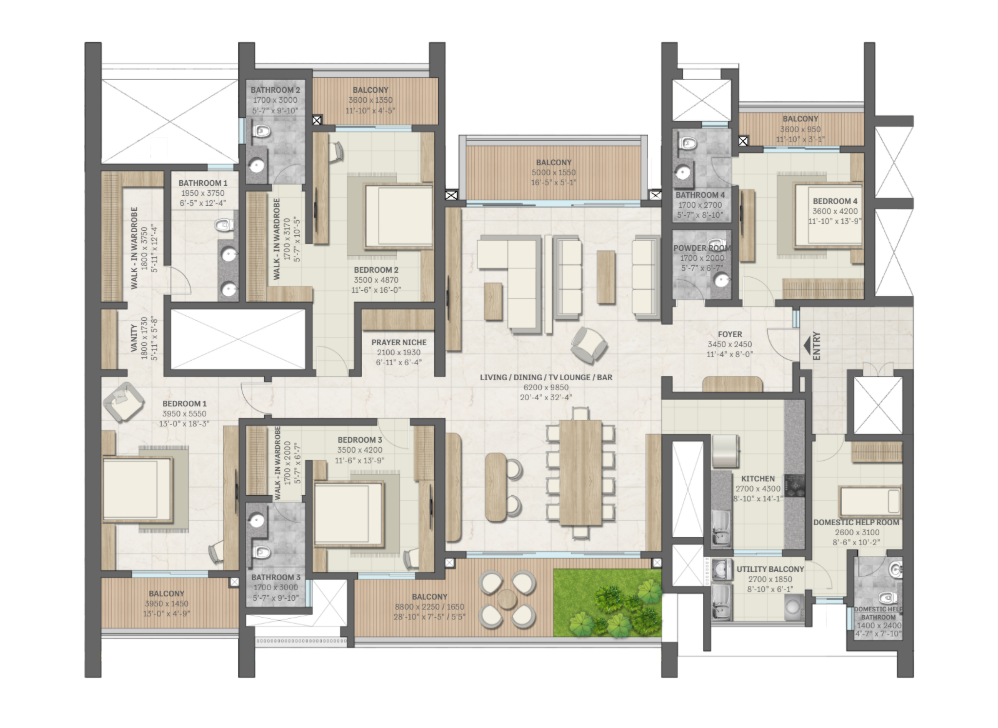 Sobha Aranya Floor plan ranges from 2,024 sq. ft. to 2,540 sq. ft. depending on the configuration.
